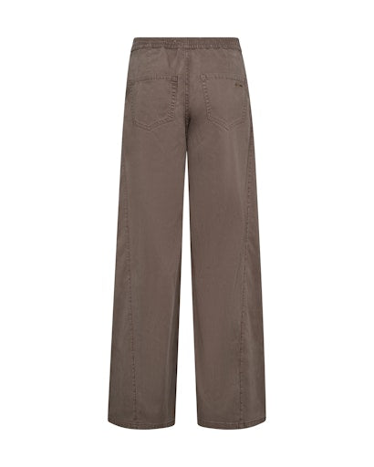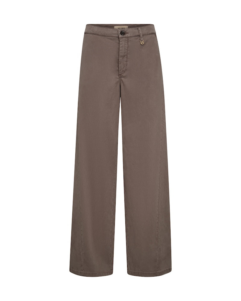 Mos Moshin kivat leveälahkeiset housut, joissa selkäpuolella kuminauha vyötäröllä. Puolikorkea vyötärö. Materiaalina puuvillan ja lyocellin laskeutuva seos.