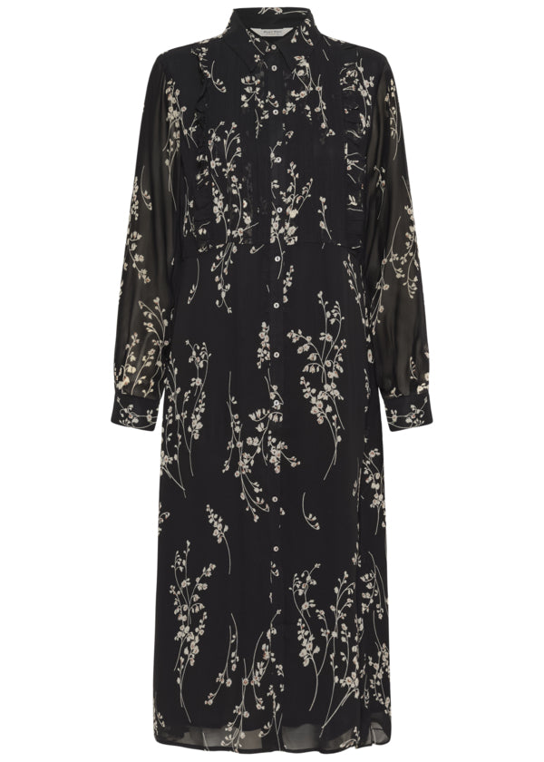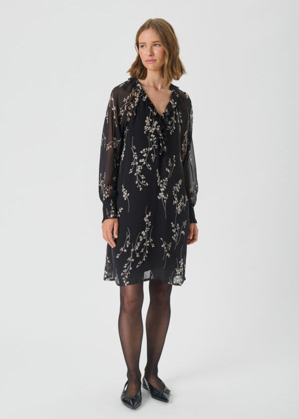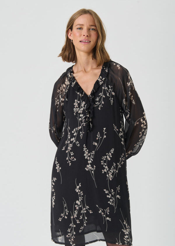 Valinka mekko, Black Fine Leaf Print