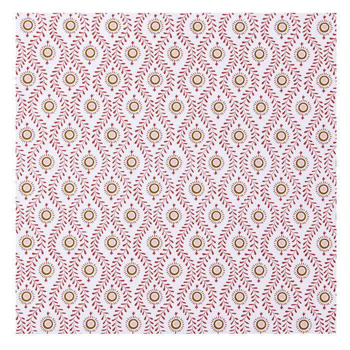 Kauniit punaiset paperiservetit perinteisellä Bungalow-printillä. Nämä isommat servetit sopivat loistavasti sekä arkisiin että juhlavampiin kattauksiin! Taittele simppelisti tai käytä lautasliinarengasta.