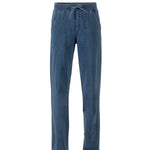 Rennot trikoiset housut suorilla lahkeilla. Vyötäröllä mukava leveä resori ja solmimisnyöri. Ihanat reissuhousut, jotka eivät purista.