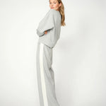 Ihanat leveälahkeiset collegehousut pehmeää, ohuehkoa collegeneulosta. Housuissa sivulla ilmettä tuomassa vaalea leveä raita. Näissä housuissa on asennetta! Yhdistä lenkkareiden tai korkkareiden kanssa päivän look!
