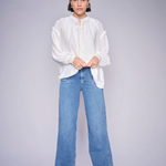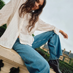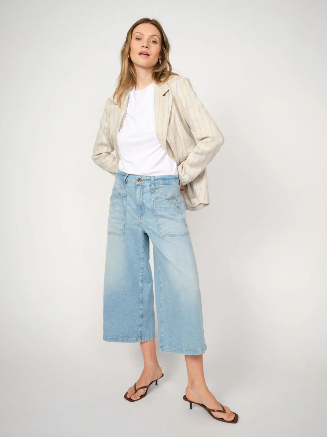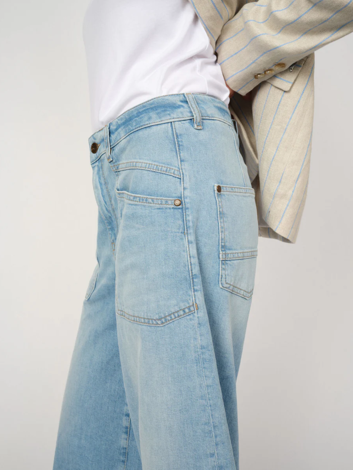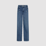 Mos Moshin sesongin uutta: keskisiniset leveälahkeiset farkut pitkillä lahkeilla. Näissä farkuissa on kiva leikkaus taskuissa. Mukavan pehmeä materiaali ja korkea vyötärö tekevät näistä taatusti kevään lempparit!