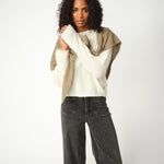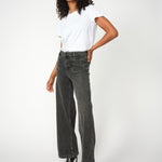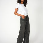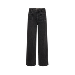 Mos Moshin kivat retrohenkiset farkut leveillä lahkeilla ja korkealla vyötäröllä. Kivat tehostetaskut tuomassa ilmettä.