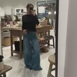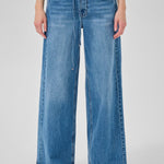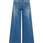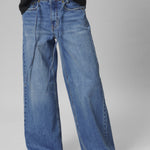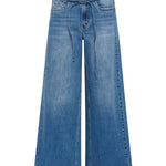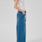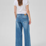 MEWin syyssesongin uudet leveälahkeiset farkut, joissa vyötäröllä solmimisnyöri. Kiva pesty keskisininen sävy. Nämä farkut ovat ihanat päällä ja voit yhdistää ne helposti erilaisten yläosien kanssa.