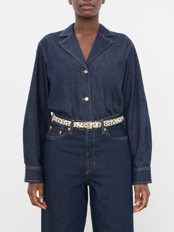 Flatteredin minimalistinen nahkavyö näyttävällä leopardikuosilla. Klassinen malli kultaisilla yksityiskohdilla. Saatavilla koossa S, M ja L.
