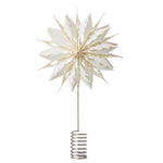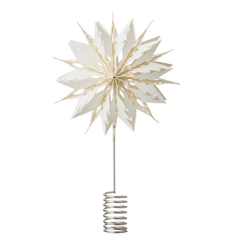 Bungalowin kaunis paperinen latvatähti joulukuuseen. Käsityönä taiteltu tähti tuo herkkyyttä ja ilmettä monenlaiseen joulukuuseen. Metallinen kiinnitys.