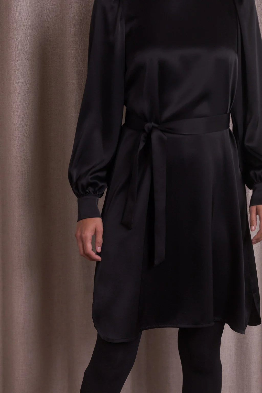 Pitkähihainen satiinimekko puhvihihalla, Black