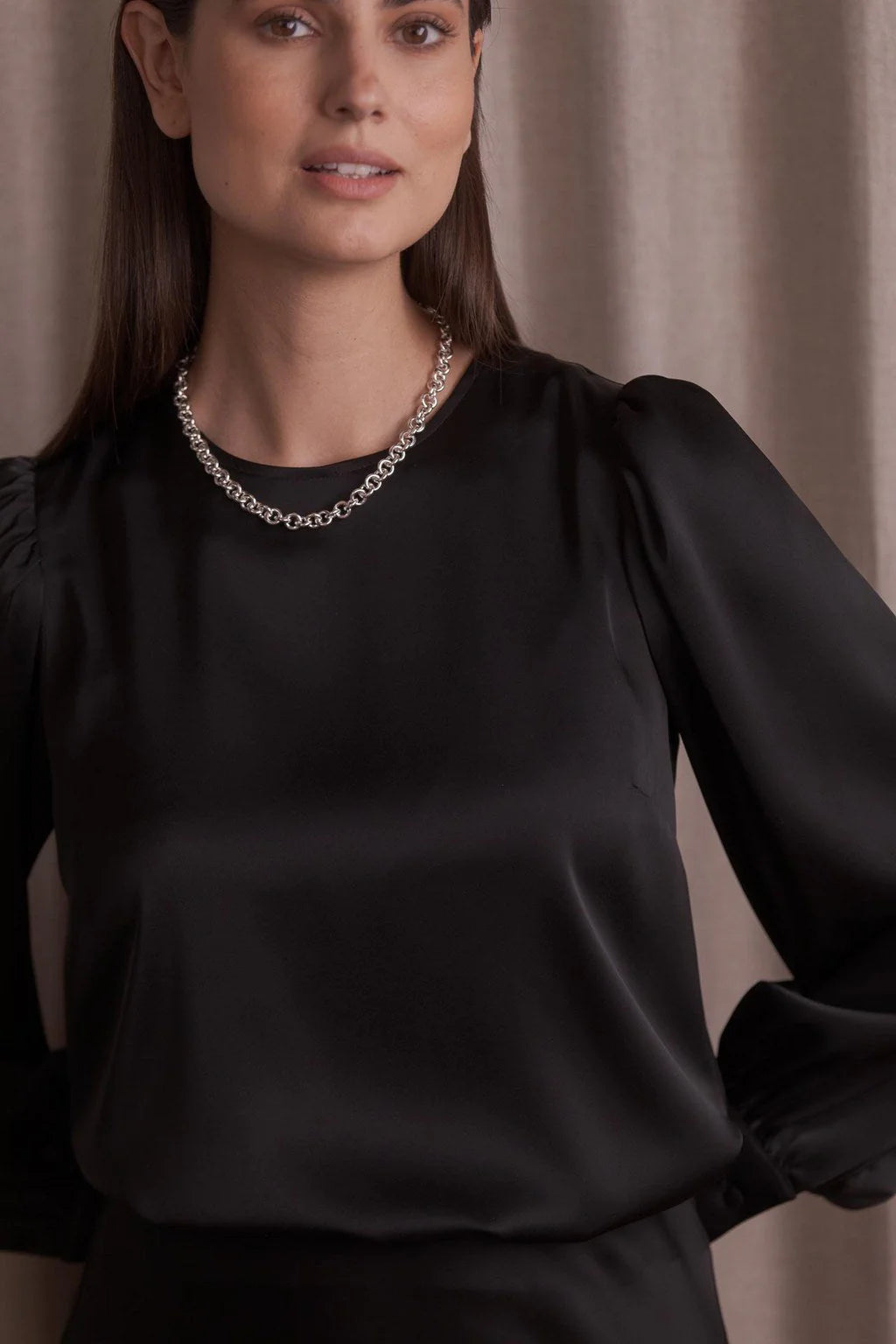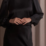 Pitkähihainen satiinipaita puhvihihalla, Black