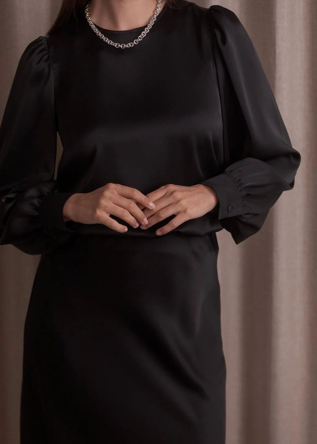 Pitkähihainen satiinimekko puhvihihalla, Black