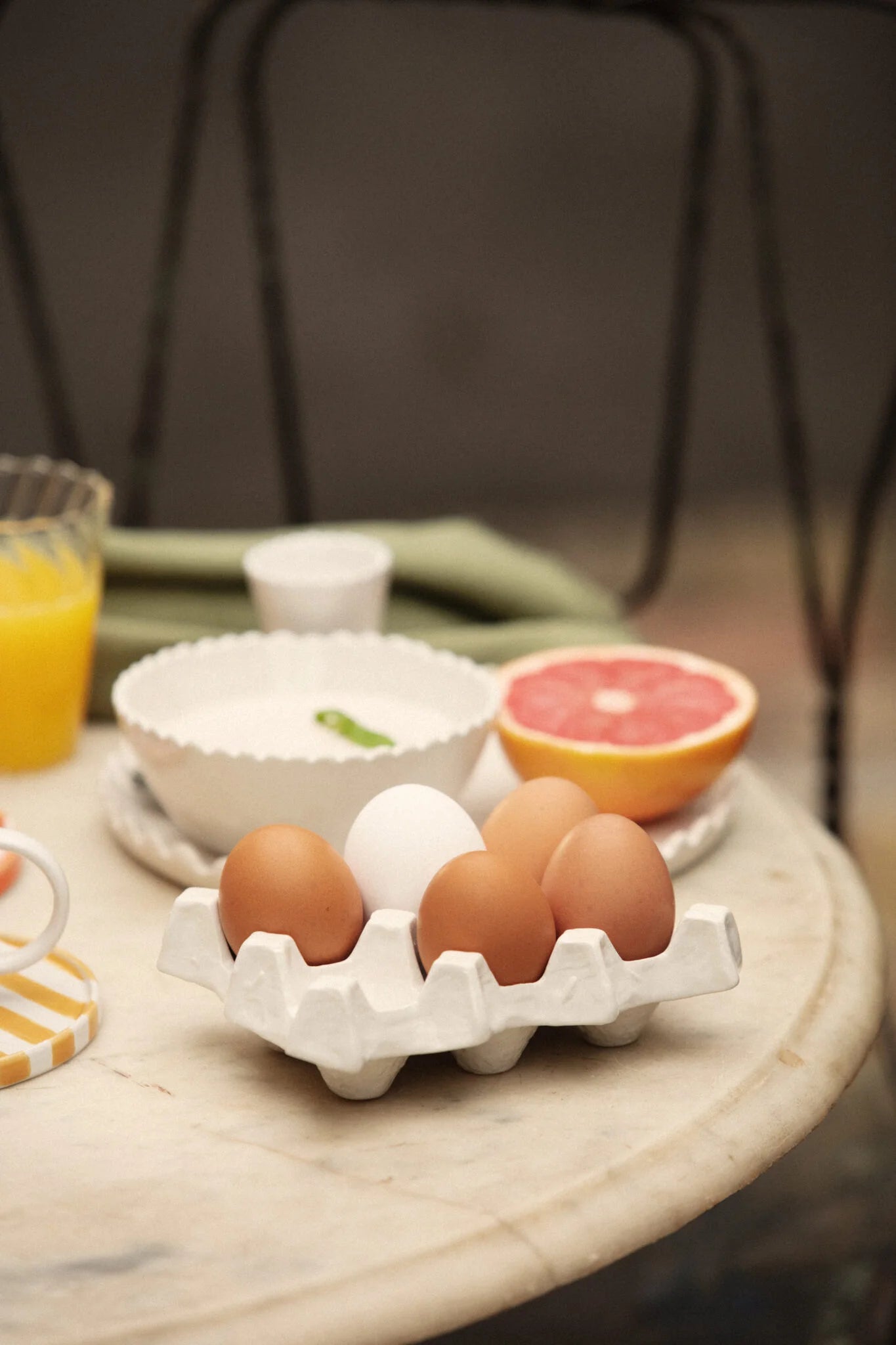 Kaunis keraaminen munakenno, johon sopii 6 kananmunaa. Ihanaa ilmettä vaikkapa aamiaispöytään tai keittiön tasolle.