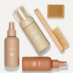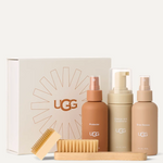 Uudistunut hoitopaketti UGG saappaiden huoltoon ja hoitoon. Suojasuihke, puhdistus- ja hoitoaine, uudistaja sekä mokkaharja ja mokkasieni.