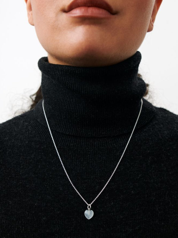 Kaunis sydämenmuotoinen riipus, jossa Blue Quartz kivi. Jokaisella kivellä yksilö on uniikki väri ja tekstuuri. Rengas kierrätettyä sterling hopeaa. Sopii kaulakoruille, rannekoruille ja korvakoruille.
