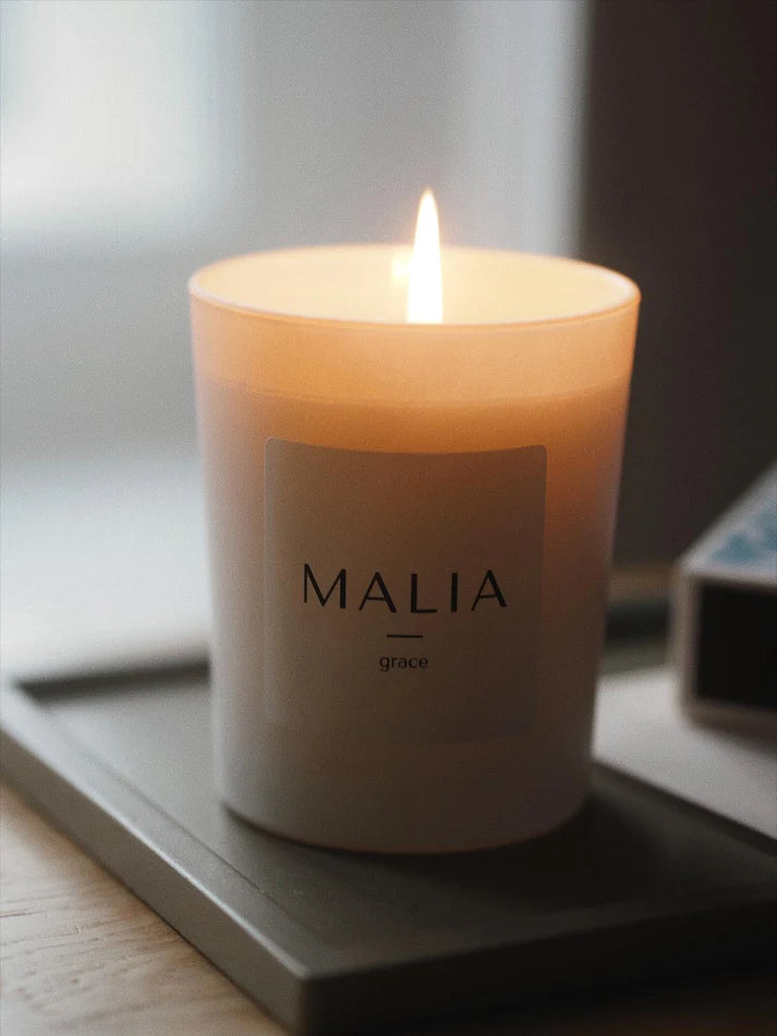 Kotimaisen MALIA:n soijavahasta valmistettu uutuus tuoksukynttilä Grace. Ihana uusi kevyt kukkaistuoksu! <3