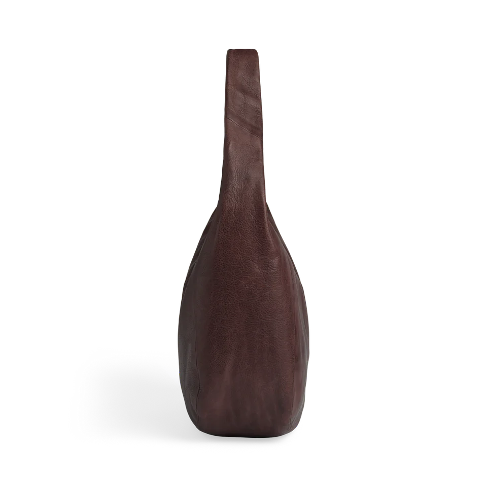 Kaunis pehmeästä antiikkinahkasta tehty käsilaukku, jossa vetoketju suulla. Laukussa on lyhyt kiinteä nahkahihna.
