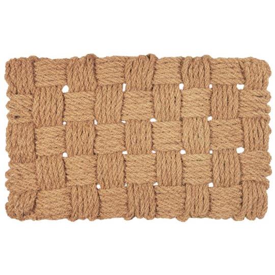 Koristeellinen letitetty ovimatto, jossa kaunis luonnollinen ilme. Materiaalina kookoskuitu.