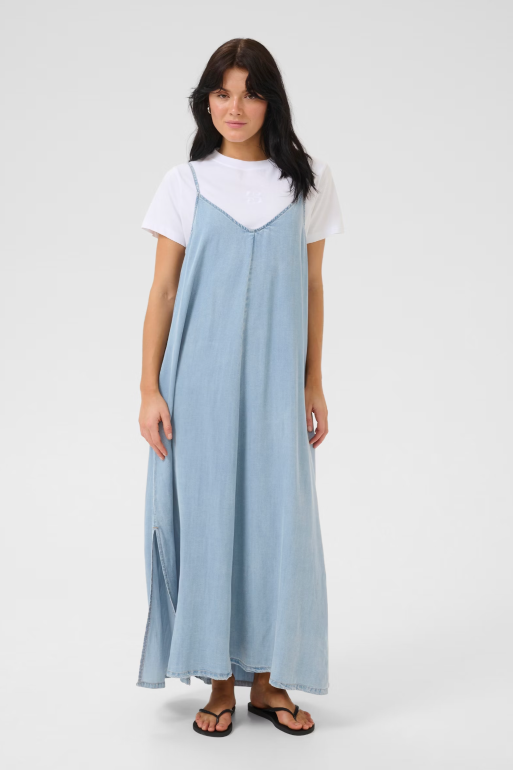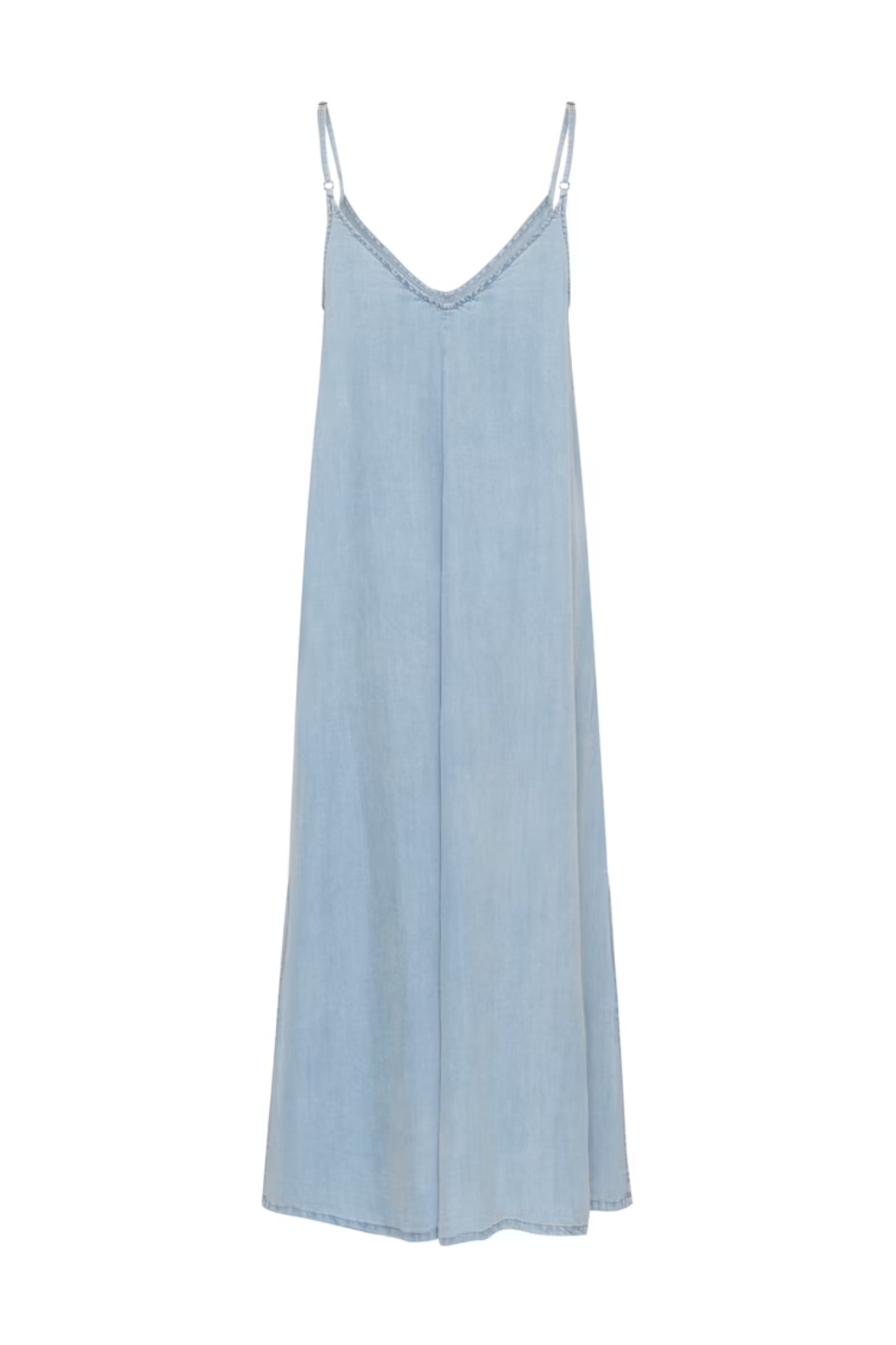 My Essential Wardroben rento maximekko farkkutyyliin! Laskeutuva lyocell tekee tästä mukavan kesämekon monenlaiseen käyttöön. Pue alle t-paita tai käy hellepäivänä sellaisenaan kepeiden sandaalien kanssa.
