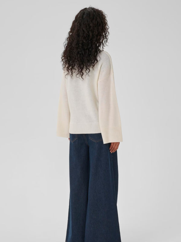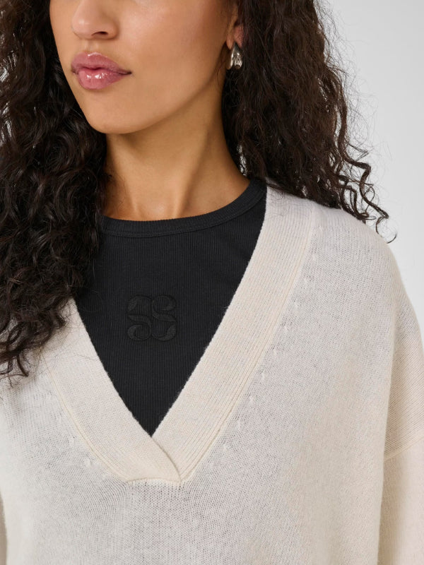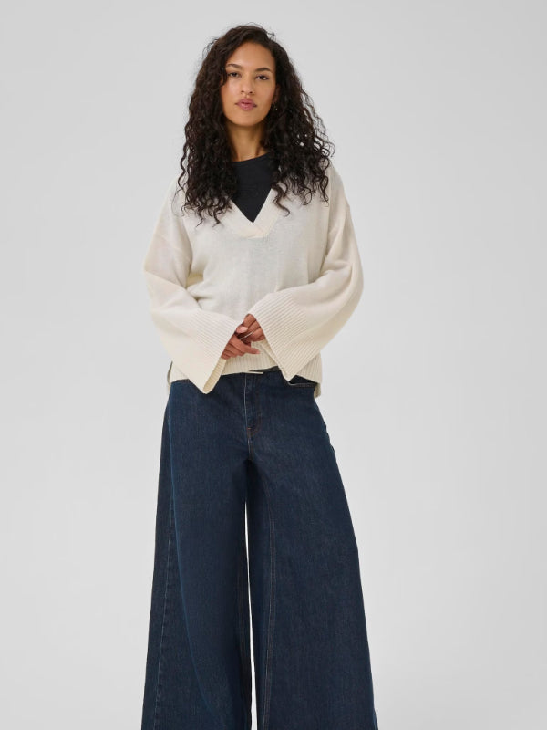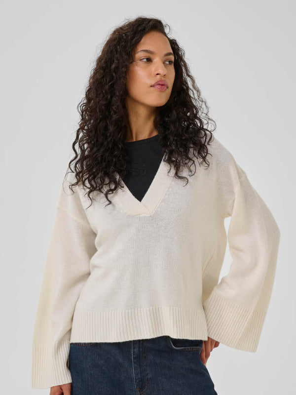 Tämä villaneule on malliltaan rento ja siinä on kaunis V-kaula-aukko. Siinä on pitkät ja leveät hihat sekä resorireunus. Huxi neule on vaatekaapin kulmakivi ja siksi se on helppo yhdistää erilaisten alaosien kanssa.
