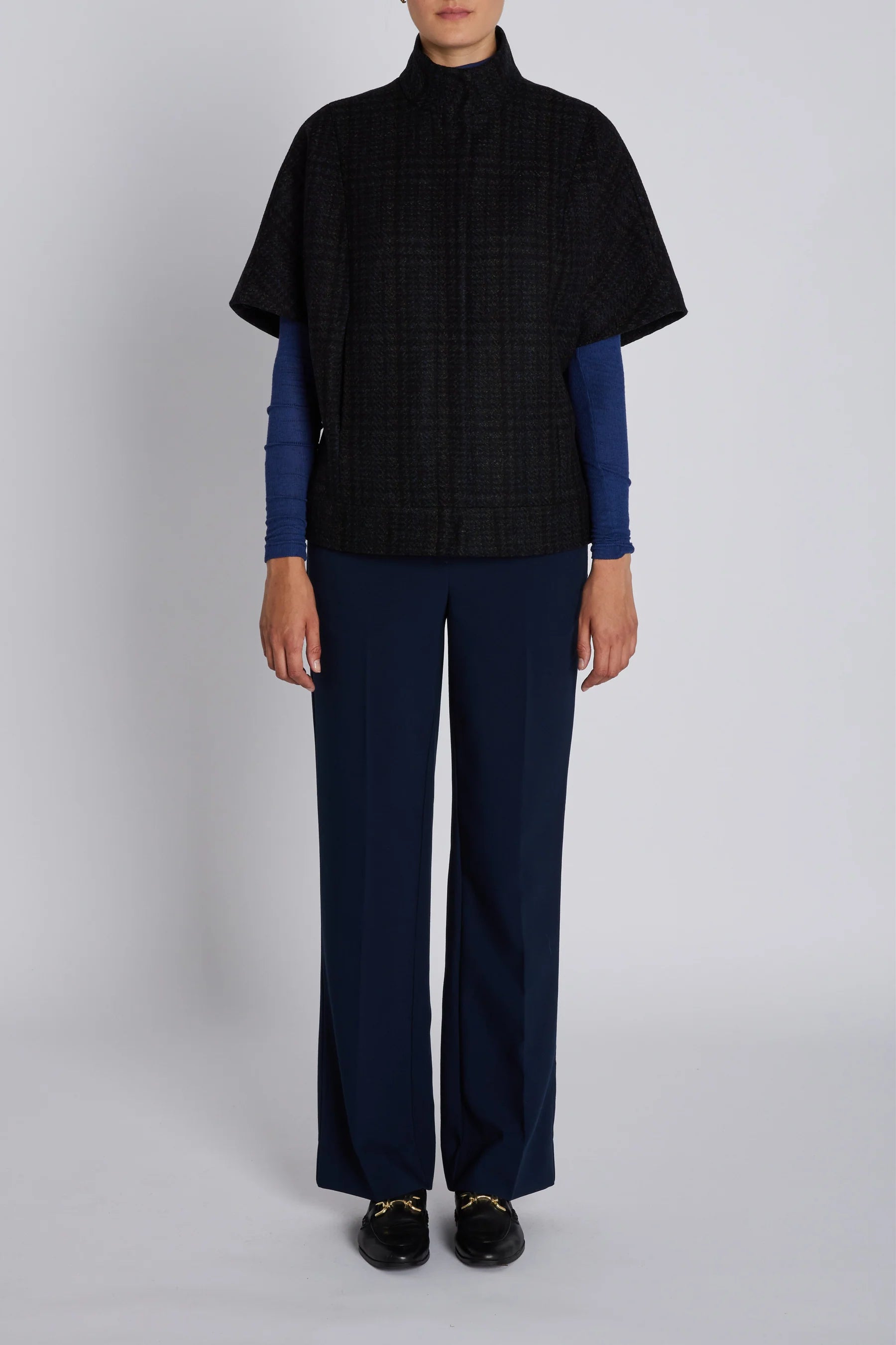 Bruuns Bazaarin korkeakauluksinen villasekoitteesta valmistettu liivi, jossa tumma ruudullinen kuvio. Moderni ja minimalistinen malli. Täydellinen kerrospukeutumiseen!