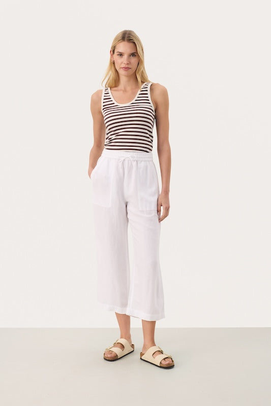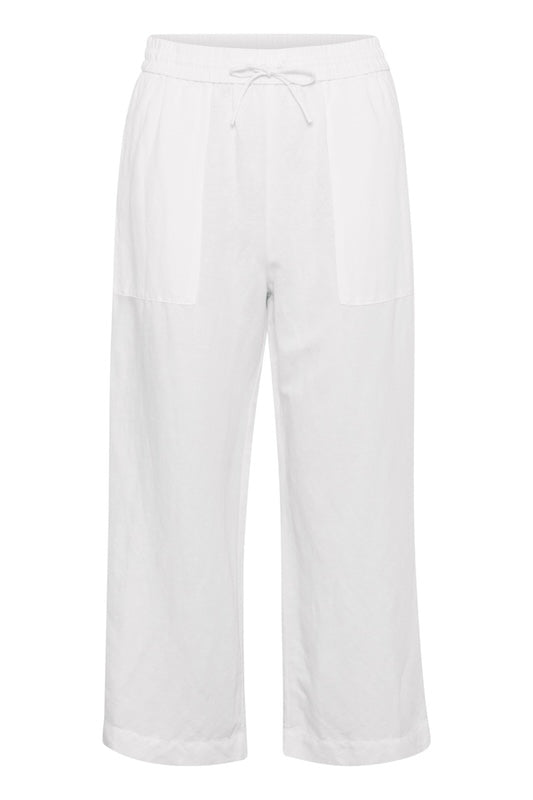 Part Twon kivat kesähousut pellavan ja viskoosin sekoitetta. Vajaamittaiset lahkeet ja kuminauhavyötärö. Taskut sivussa. Kaksi takataskua.