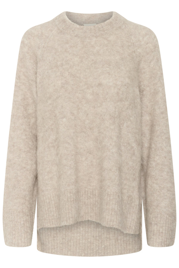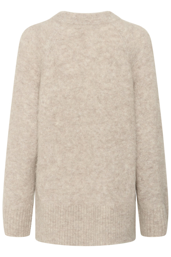 Part Twon ihana meleeratun beigen sävyinen pehmoinen neule angorasekoitetta. Sopivan pitkä malli, helma edestä hieman lyhyempi kuin takaa.