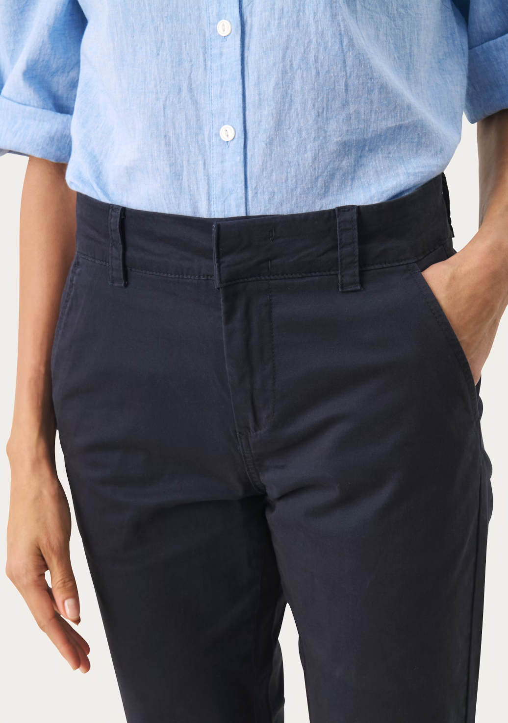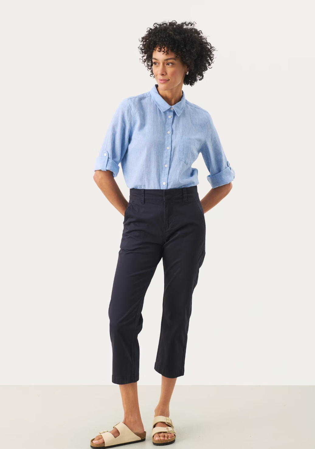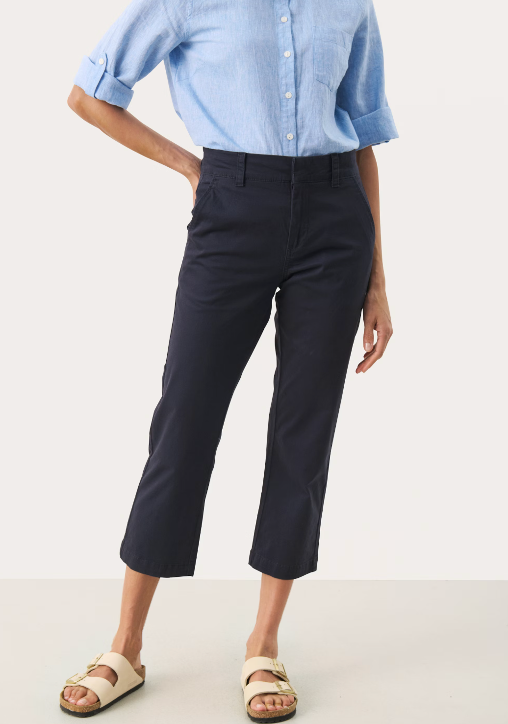 Kivat suorat caprihousut vajaamittaisilla lahkeilla. Mukavat kesähousut toimistolle ja kesämenoihin! Yhdistä paitiksen kanssa siistimmin tai t-paidan ja farkkutakin kanssa rennommin.