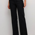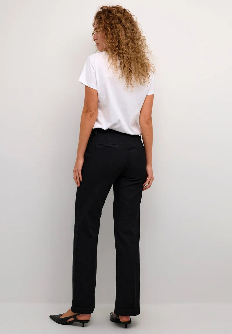 Mustat farkkumaiset suorat housut ovat My Essential Wardroben jo klassikoksi muodostunut housumalli. Suora kauniisti laskeutuva alaosa, joka on helppo yhdistää niin neuleen kuin paitiksen tai bleiserin kanssa vapaalle ja toimistolle.