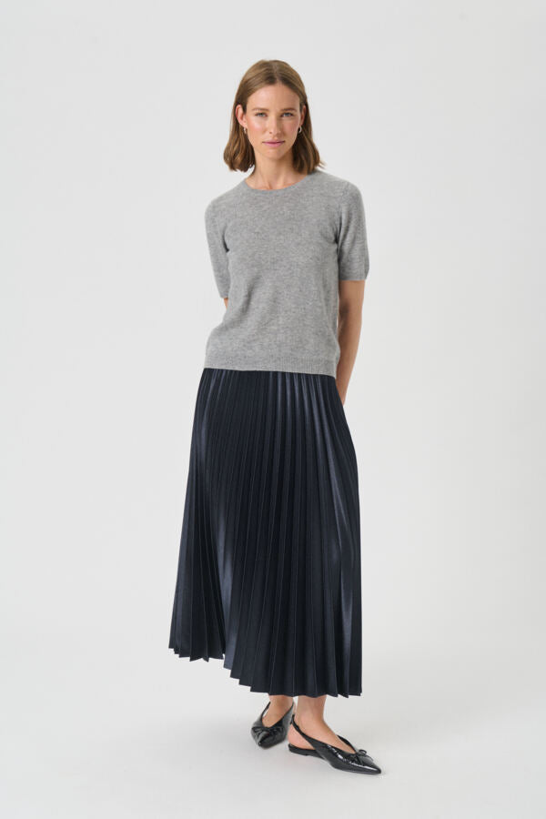 Part Twon ajaton lyhythihainen villaneule pyöreällä kauluksella. Materiaalina villan ja cashmeren pehmeä sekoite. Hihoissa, kauluksessa ja helmassa resorit. Lämmin lyhythihainen villaneule on juuri sopiva valinta toimistolle. Pue siistien housujen, farkkujen tai hameen kanssa tyylikäs asu.