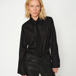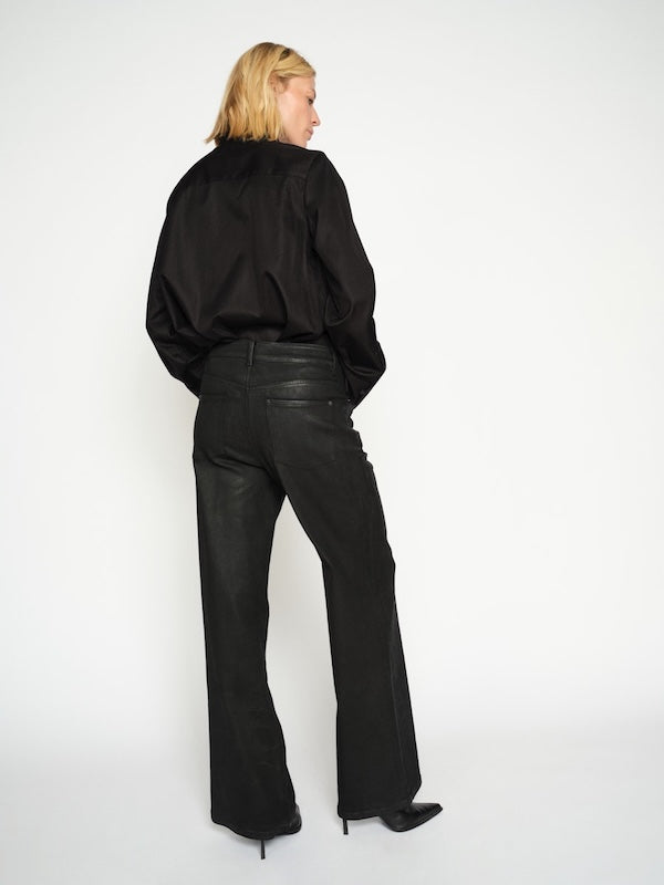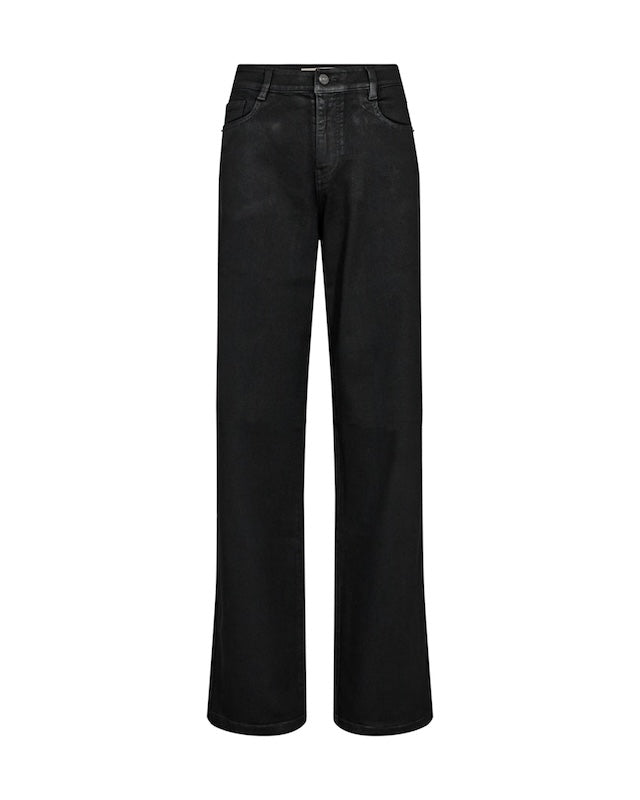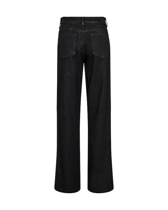 Mos Moshin ihastuttavat farkkumaiset suorat housut, jossa kiva kiilto kankaassa. Hieman nahkamainen look.