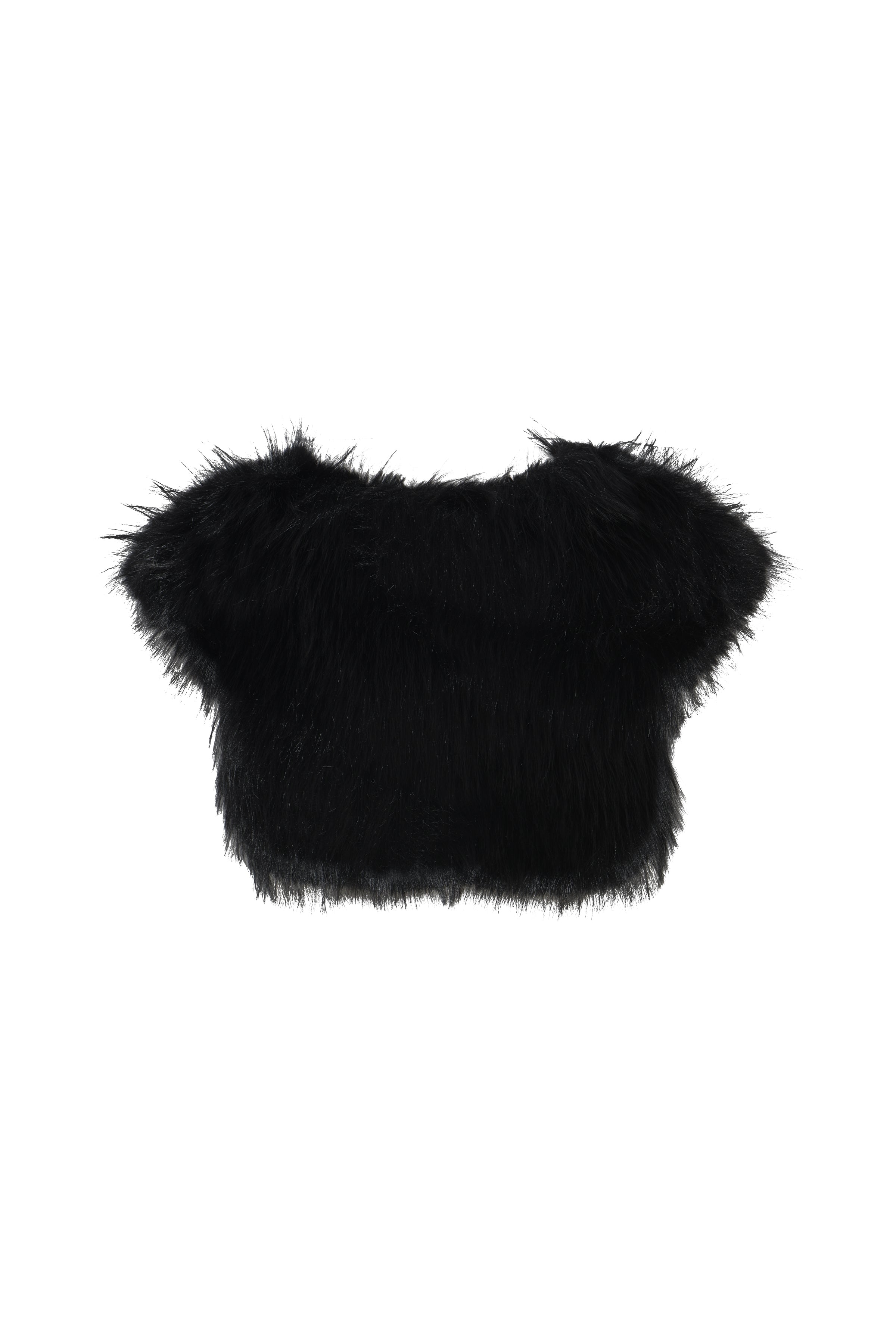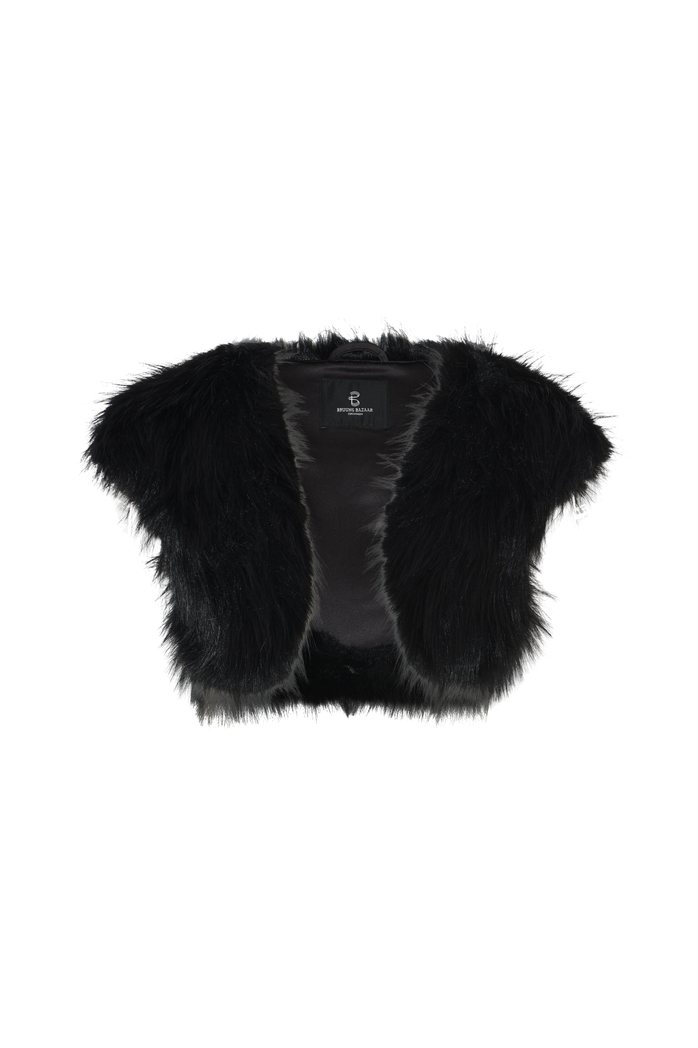Bruuns Bazaarin aivan ihana tekoturkisbolero viimeistelee juhla-asusi ja tuo siihen ripauksen ylellisyyttä. Lyhyt hihaton malli, joka on edestä avonainen ilman hakaskiinnitystä. Pue bolero päälle esimerkiksi iltapuvun tai juhlatoppien päälle.