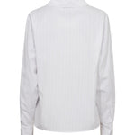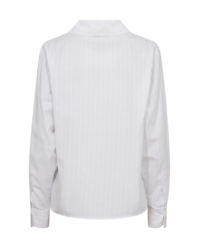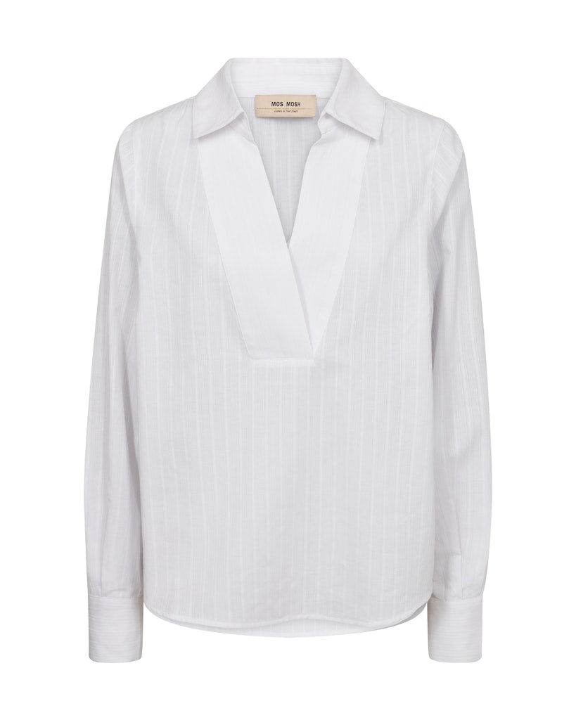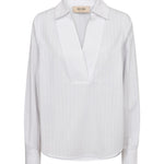Mos Moshin kaunis puuvillainen pusero v-kaula-aukolla ja paitiskauluksilla. Kankaassa kevyt raidoitus. Ajaton pusero farkkujen ja suorien housujen kaveriksi! Asusta talvella liivin, neuletakin tai bleiserin kanssa.