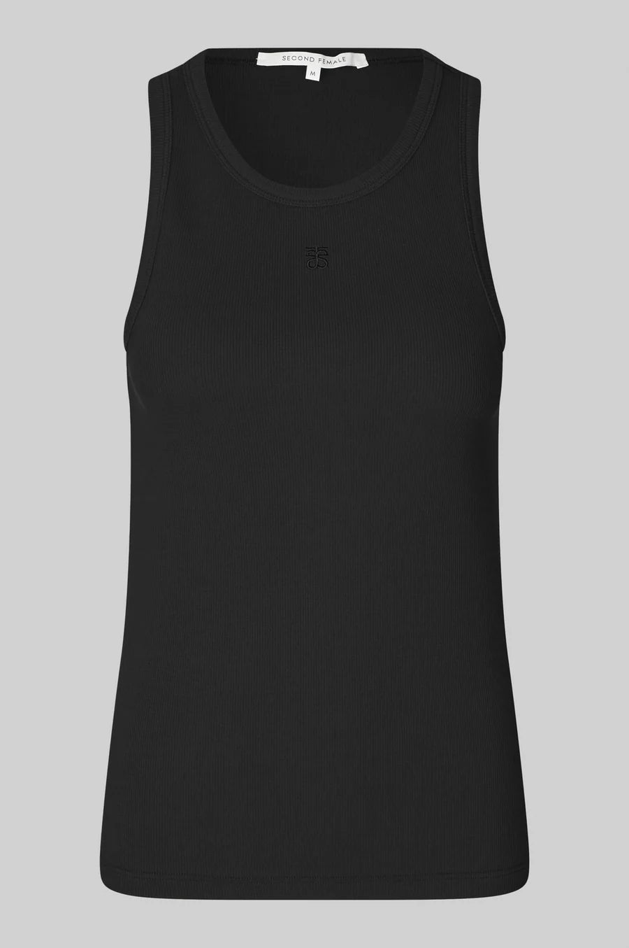 Second Femalen ajaton puuvillainen toppi, jossa logo rinnassa. Vaatekaapin klassikko, jonka puet aluspaidaksi neuleen tai bleiserin alle tai kesällä shortsien kanssa sellaisenaan! Ribbineulosta.