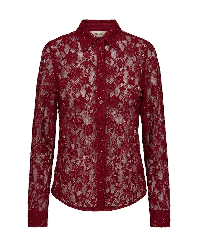 Mos Moshin ihastuttava pitsipusero talven juhliin! Slim Fit. Edessä napitus. Paidassa mukava ripaus bling blingiä pieninä paljetteina.