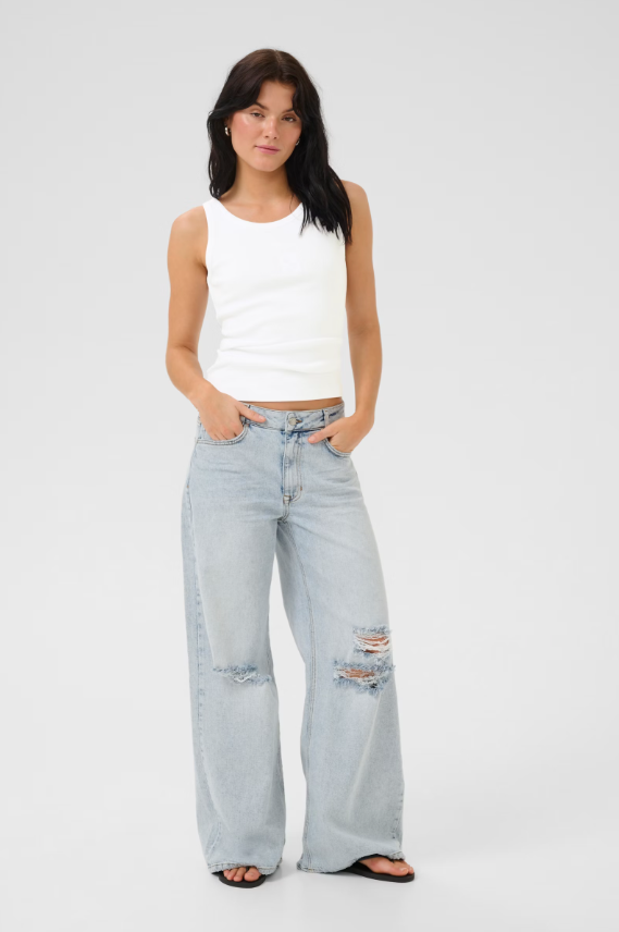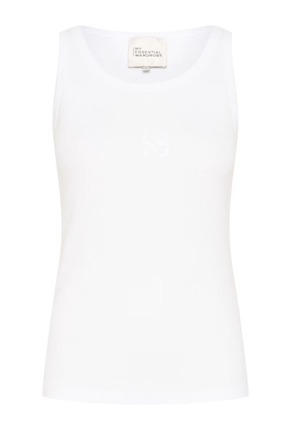 My Essential Wardroben ajaton puuvillainen perustoppi, jossa logo rinnassa. Vaatekaapin klassikko, jonka puet aluspaidaksi neuleen tai bleiserin alle tai kesällä shortsien kanssa sellaisenaan!