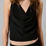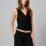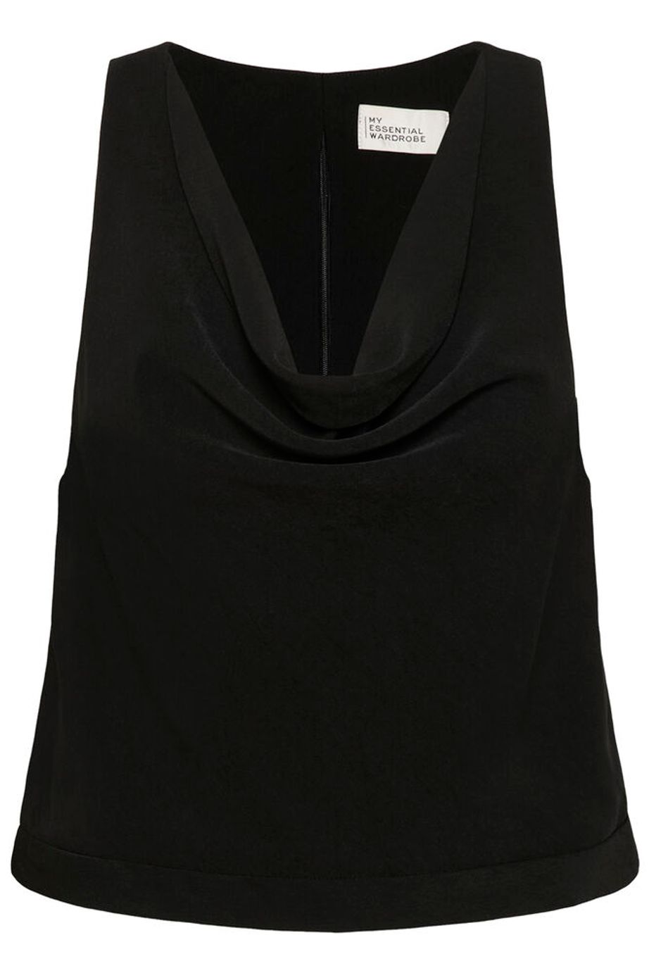 My Essential Wardroben elegantti vesiputoustoppi sopii yksinkertaiseen kokomustaan asuun. Elegantti ja ajaton. Pue farkkujen kanssa arkisempaan tyyliin. Takana vetoketjukiinnitys.