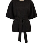 Mos Moshin syksyn uutta: musta ajaton pusero rennolla mallilla. Solmi mukana tuleva kangasvyö vyötärölle ja saat näyttävän asun vaikkapa suorien housujen kanssa.