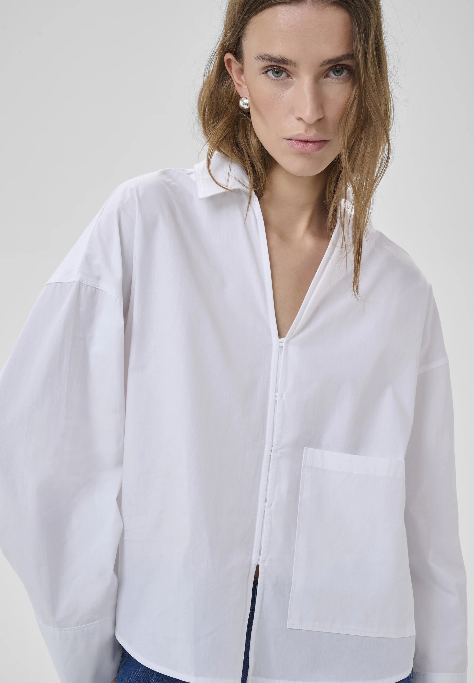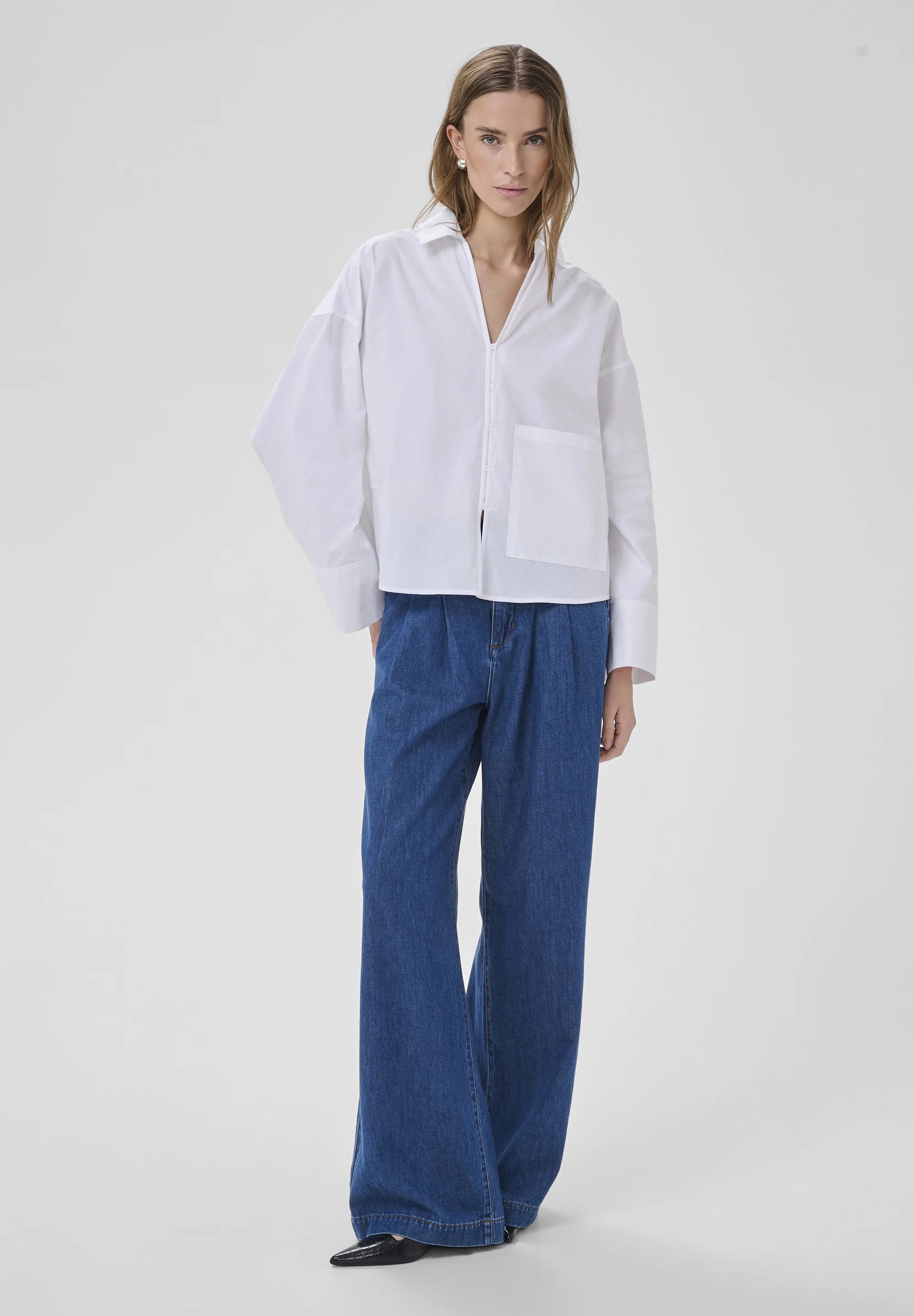 My Essential Wardroben ihanan rento boxy-mallinen paitis nyt myös valkoisena. Kiva jakkumainen malli tukevaa puuvillaa. Edessä tasku ja piilonapitus. Monipuolinen vaatekaapin perusvaate arkeen ja juhlaan!