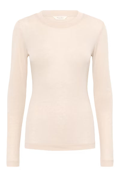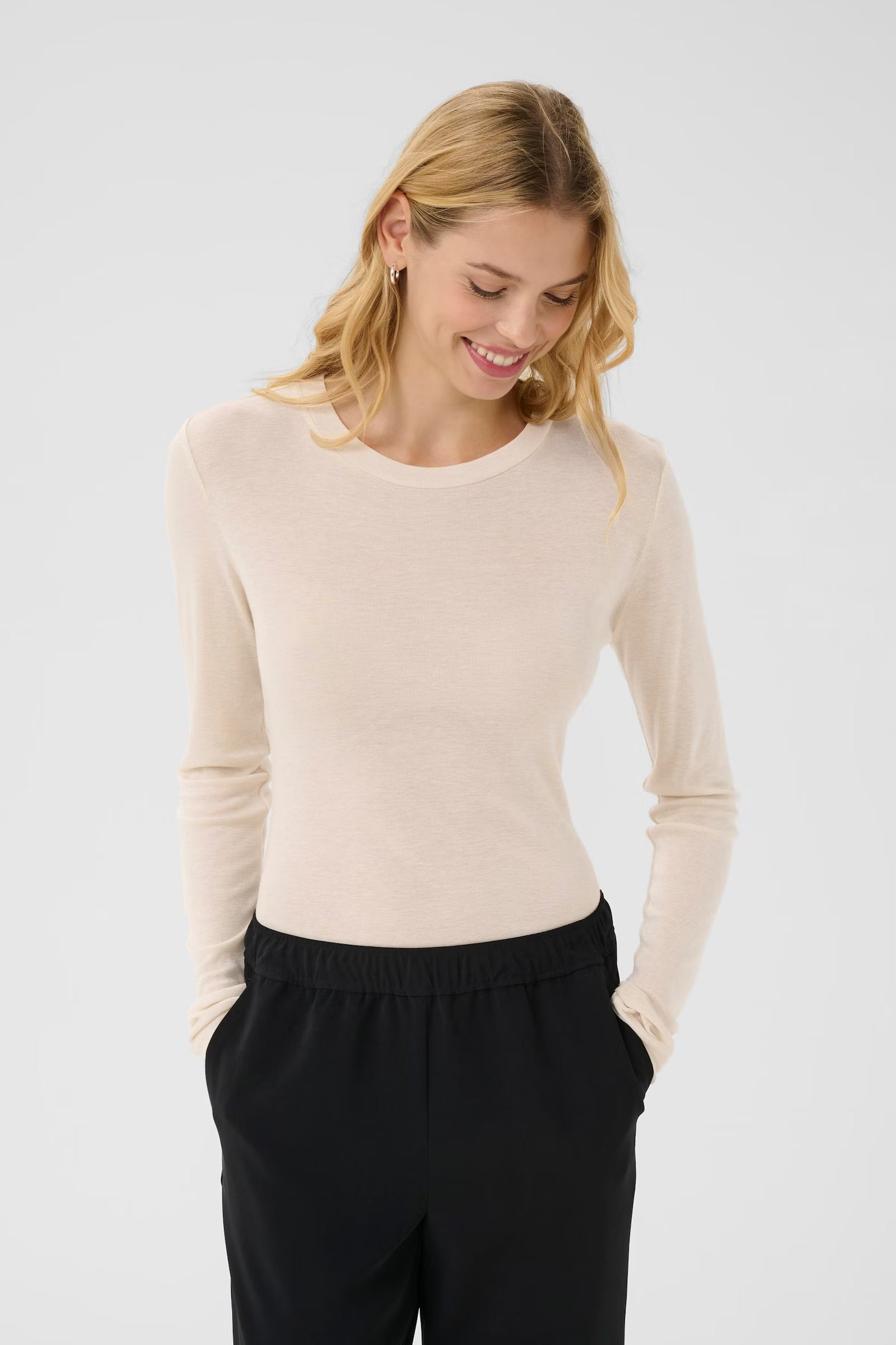 Part Twon ajaton pitkähihainen t-paita mukavaa villan ja lyocellin sekoitetta. Pue neuletakin tai bleiserin alle tai yhdistä farkkujen kanssa mukavaa syyslook! Kiva rento malli.