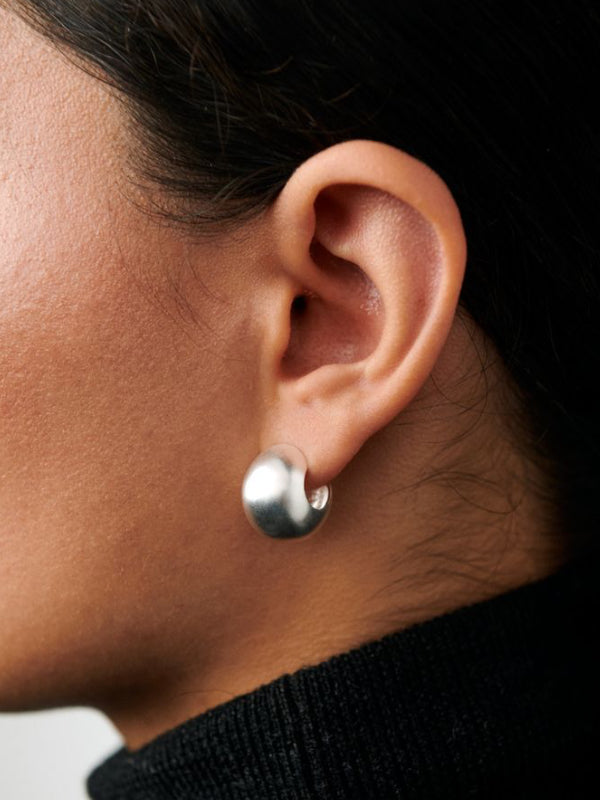 Pernillen Small Echo korvarenkaat, joissa paksu ja elegantti look. Renkaat on hopeoitua messinkiä.