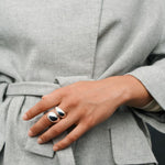 Pernillen La Pausa on veistoksellinen ja näyttävä statement sormus. Tämä sormus on hopeoitua messinkiä. Saatavilla koossa 55, 57 ja 59 mm.
