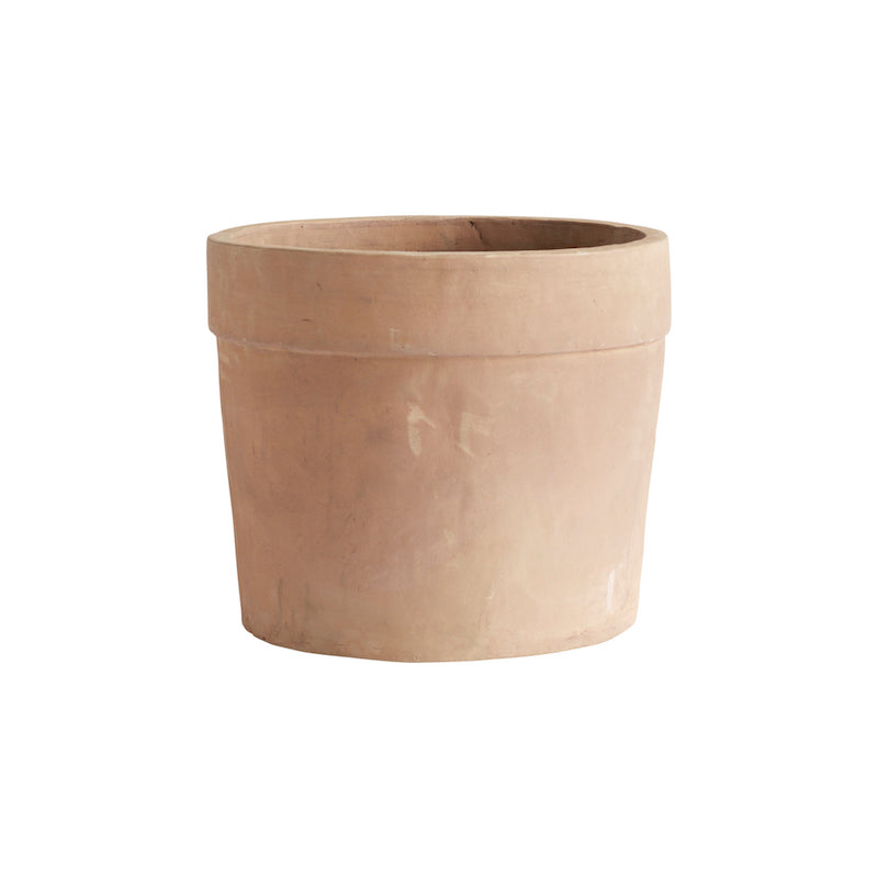 Hengittävää luommollista savea. Pohjassa reikä. Käytä sisällä aluslautasta. Ota ruukku sisään talveksi.
