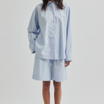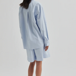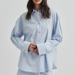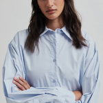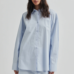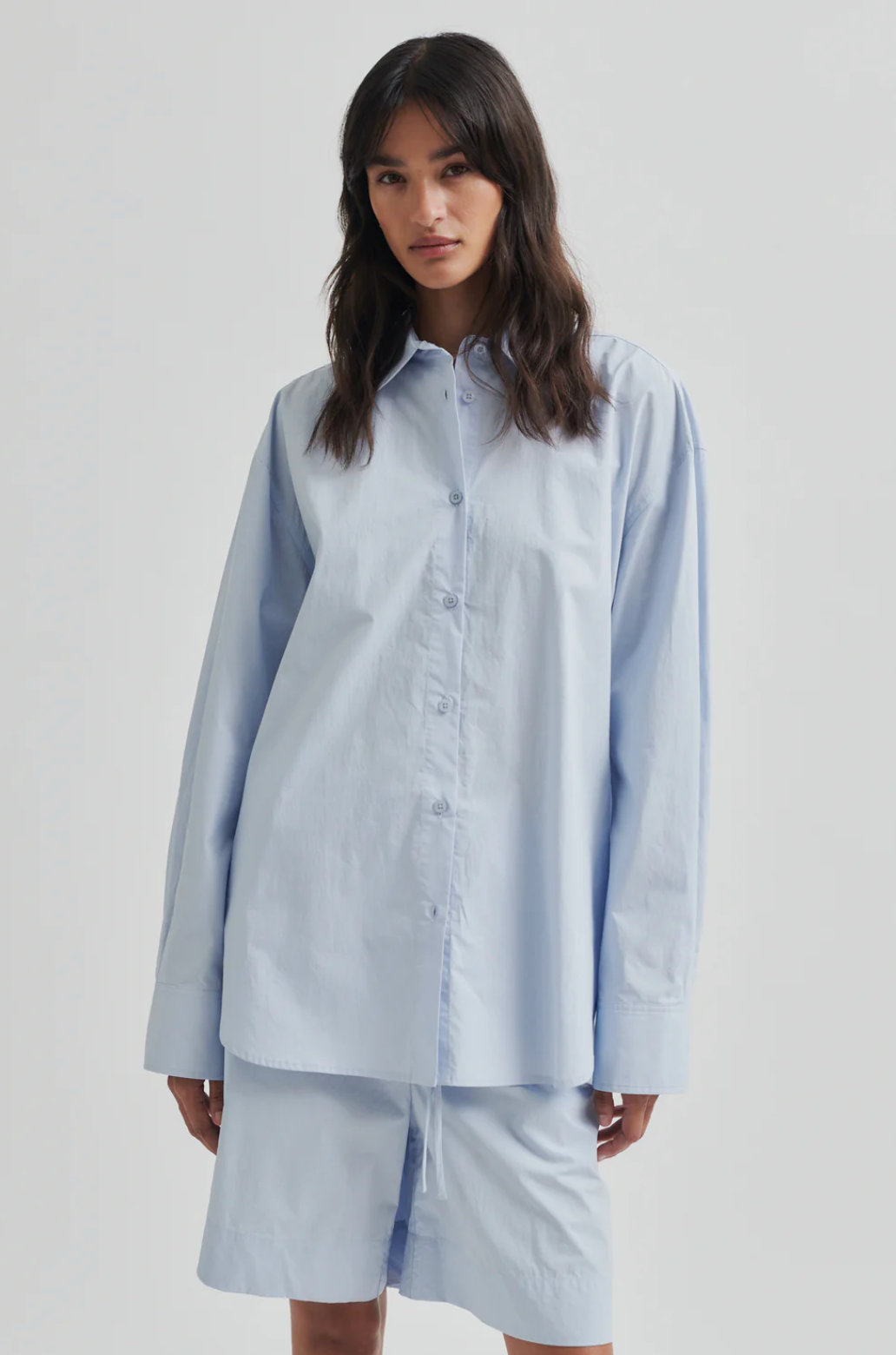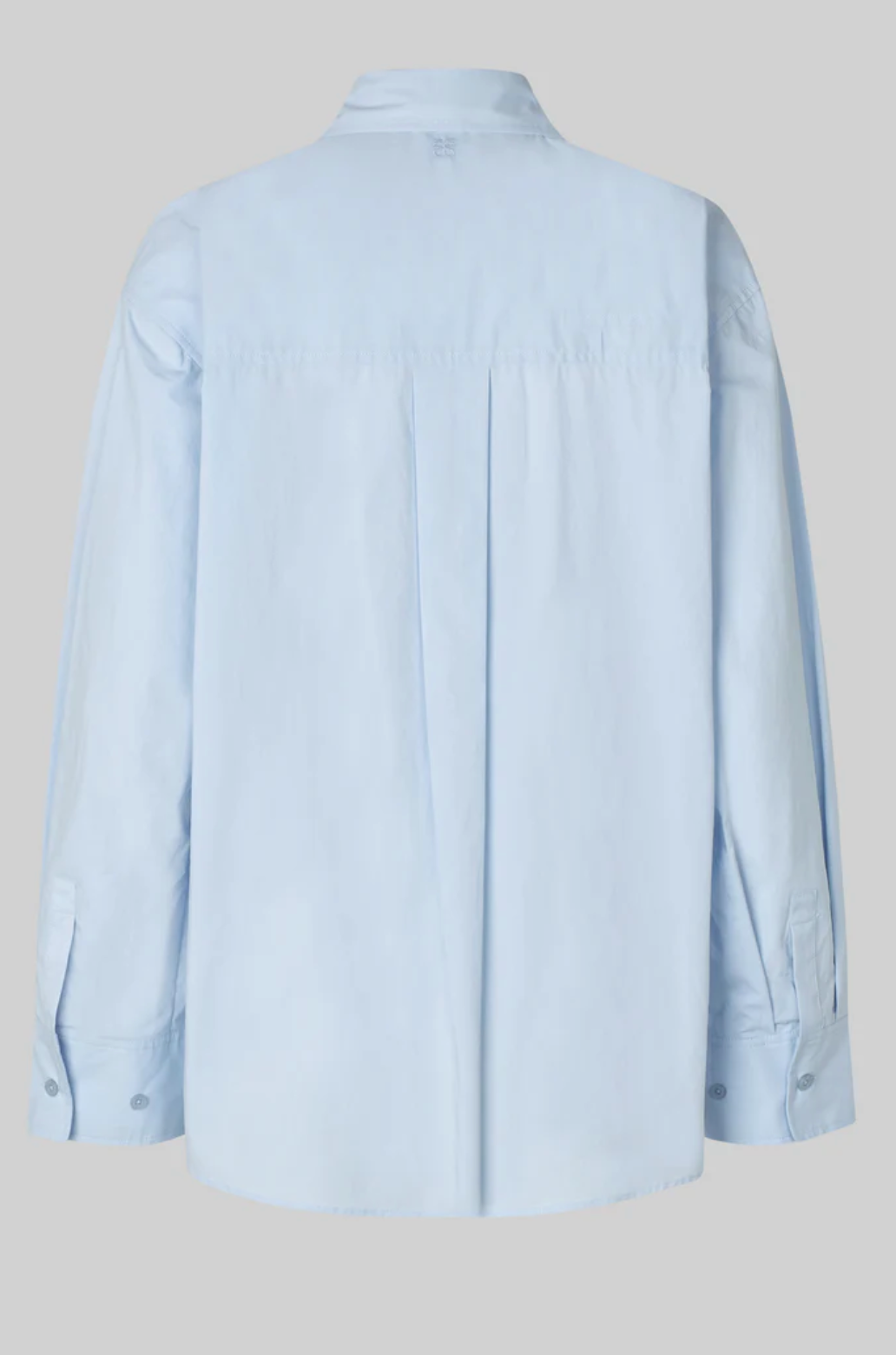 Rento paitapusero kauniissa vaaleansinisen sävyssä. Selkäpuolella laskos lisäämässä istuvuutta. Yhdistä rennosti shortsien tai pitkien housujen kanssa.