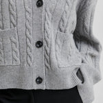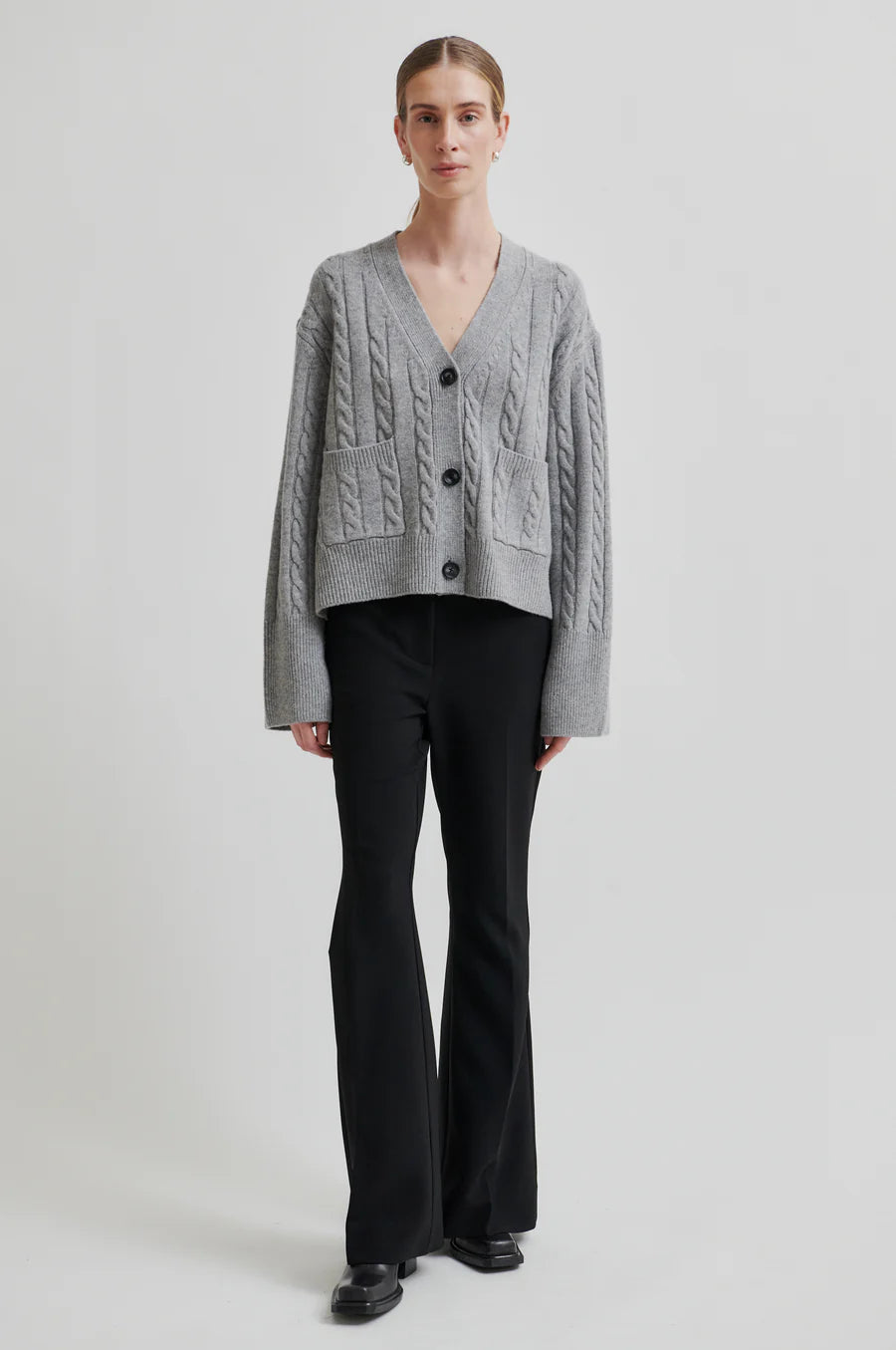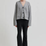 Second Femalen kaunis palmikkoneuletakki rennolla leikkauksella. V-kaula-aukko ja kivat napit edessä. Taskut ja pitkät hihat leveillä resoreilla.