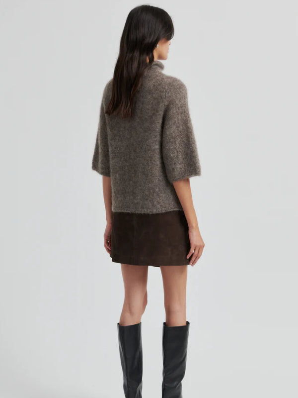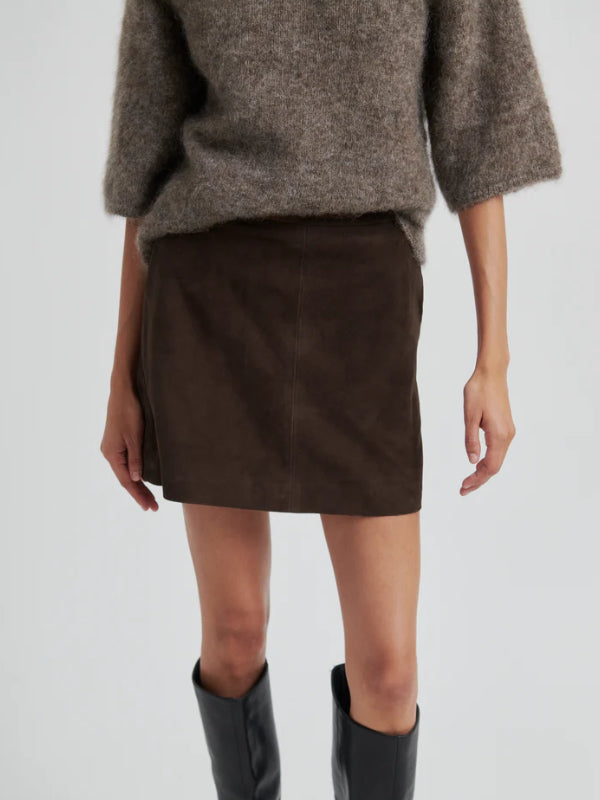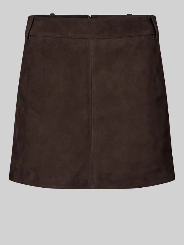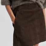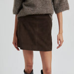 Second Femalen mini mokkahame kauniissa ruskeassa sävyssä. Hameessa kivat tikkaukset tuomassa ilmettä. Kokonaan vuoritettu malli, jossa vetoketju takana. Hameessa on normaali istuvuus ja suora malli. Yhdistä saappaiden ja pörröisen neuleen kanssa tyylikäs syyslook!