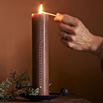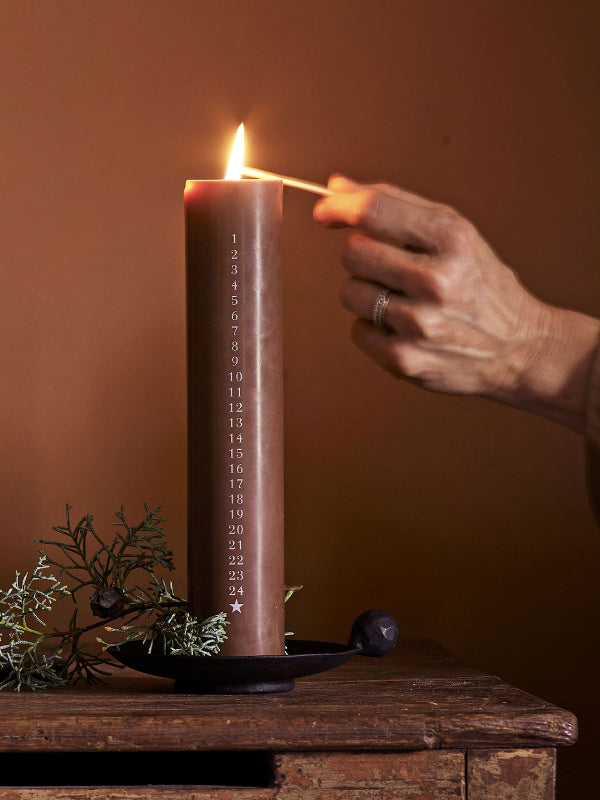 Tine K Homen adventtikynttilä ruskeassa sävyssä. Polta päivittäin pieni pala, rentoudu hetki ja valmistaudu jouluun. <3