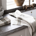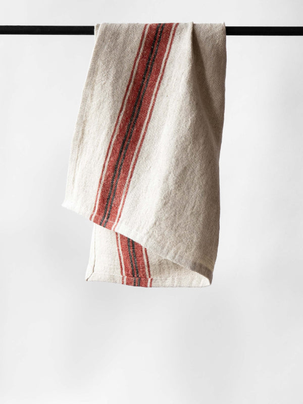 Tell Me Moren perinteinen ja kestävä pellavainen raitakeittiöpyyhe luonnolliseen tyyliin! Materiaalina karkeampi pellava, jossa kiva rakenne. Ihana eloisa punainen sävy.