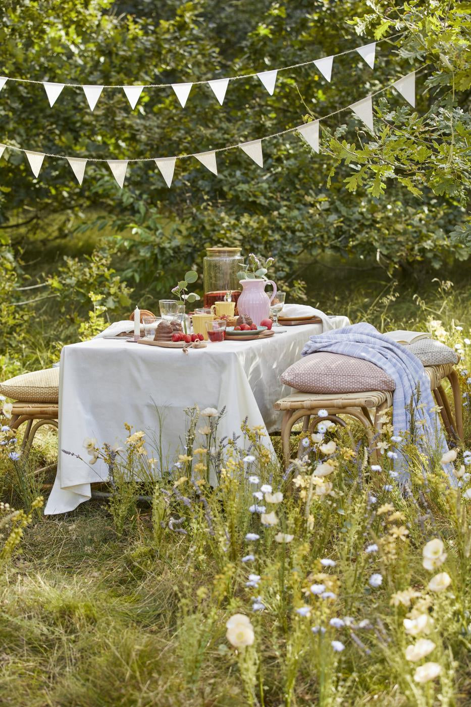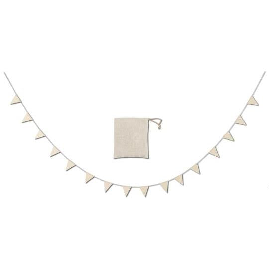 Ib Laursenin suloinen lippukoriste juhlaviin hetkiin. Ripusta naru koristamaan tärkeää hetkeä tai luomaan tunnelmaa kesäpiknikille. Narun molemmissa päissä on silmukka, joiden avulla koriste on helppo ripustaa. Mukaan kuuluu säilytyspussi.