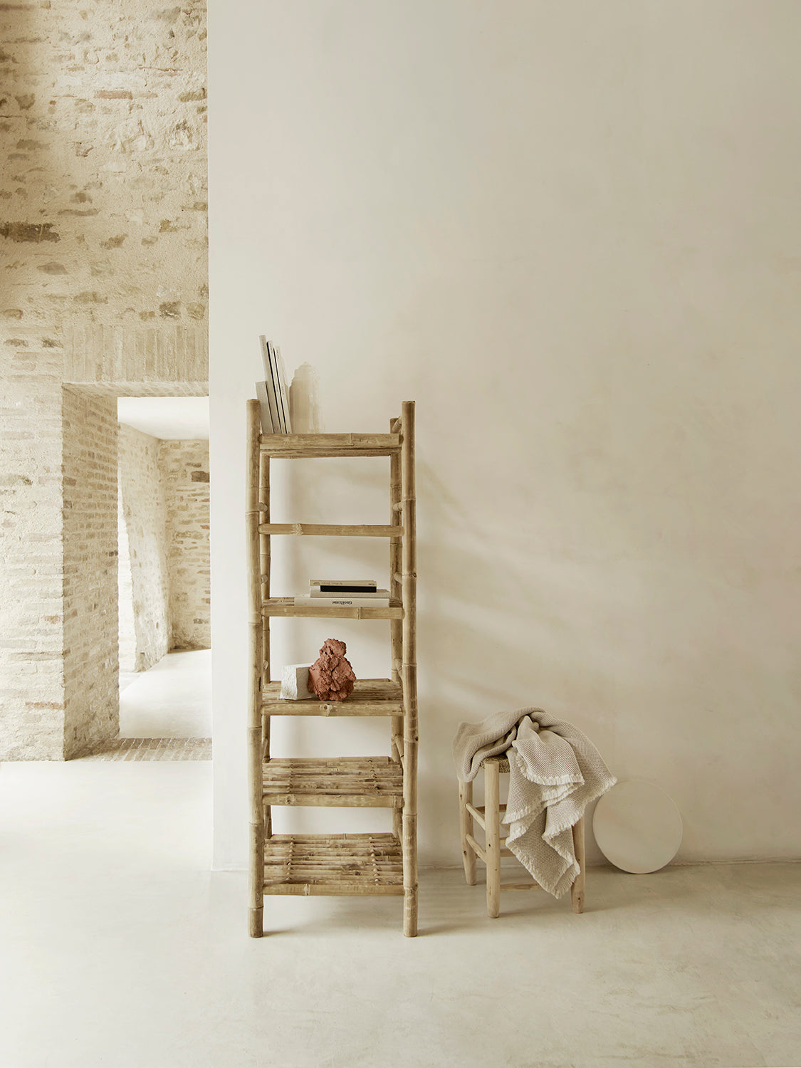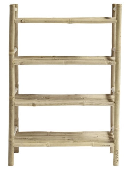 Terassille, parvekkeelle, makuuhuoneeseen, kesäkotiin.. bambusta tehty kaunis suuri hylly kirjoille, koreille, tyynyille, koriste-esineille..  Sopii myös ulos katetulle terassille.