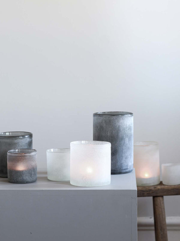 Tell Me Moren ajaton valkoinen kynttilälyhty. Suupuhallettua lasia. Kynttilälyhty on valmistettu käsin Pohjois-Kiinassa. Lyhty on rullattu soodassa korkeassa lämpötilassa, jotta lasi saa kauniin ja ainutlaatuisen himmeän pinnan.