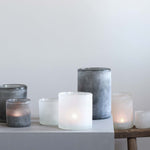 Tell Me Moren ajaton valkoinen kynttilälyhty. Suupuhallettua lasia. Kynttilälyhty on valmistettu käsin Pohjois-Kiinassa. Lyhty on rullattu soodassa korkeassa lämpötilassa, jotta lasi saa kauniin ja ainutlaatuisen himmeän pinnan.