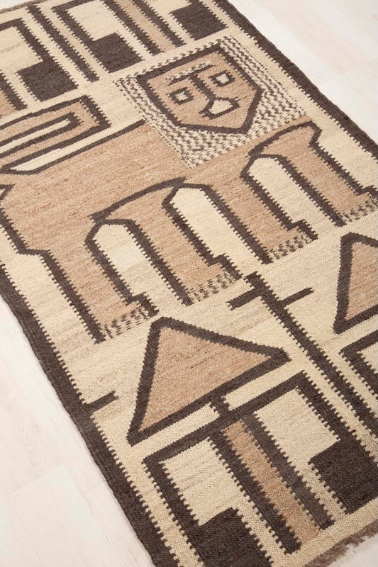 Ruotsalaisen Bargin tyylikäs villainen Kelim-matto. Tässä matossa on persoonallinen kuviointi. Matot valmistetaan käsityönä. Jokainen tuote on ihana yksilö! Me niiin tykätään! <3